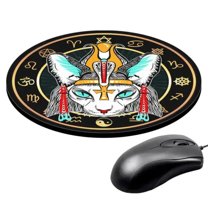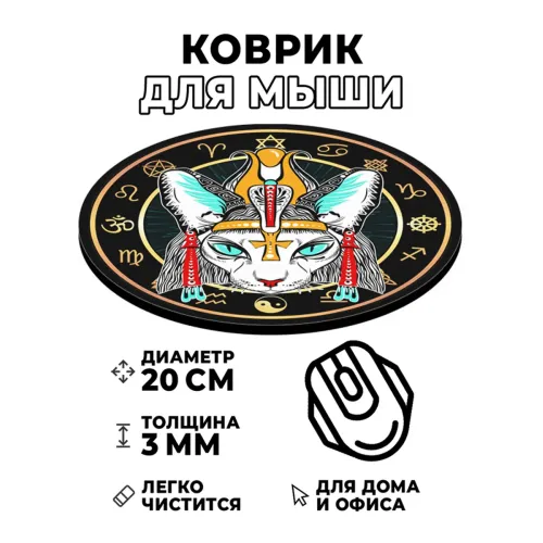 Коврик для мыши с изображением египетской кошки — это не только практичный аксессуар, но и стильный элемент декора рабочего места. Символизируя грацию и загадочность древнего Египта, он добавит уникальности в повседневные задачи.