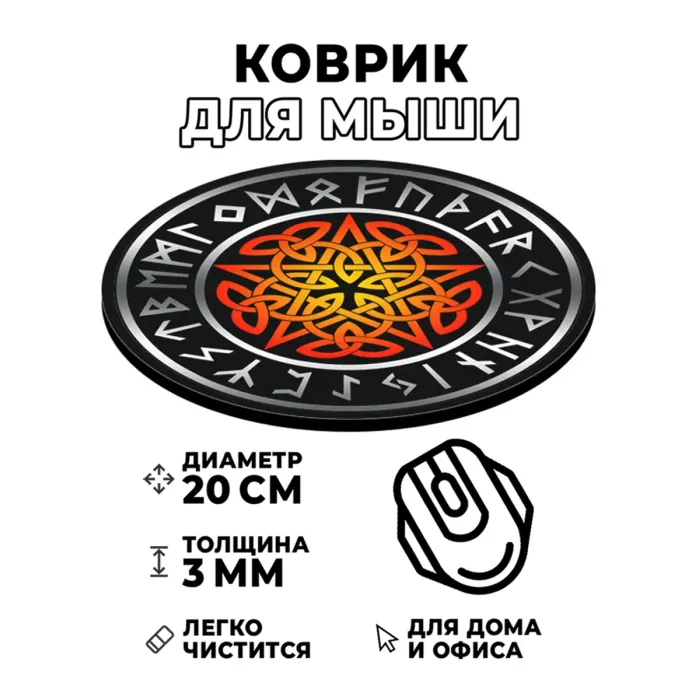 Коврик для компьютерной мыши с изображением пентаграммы. Диаметр 20 см, толщина 3 мм.