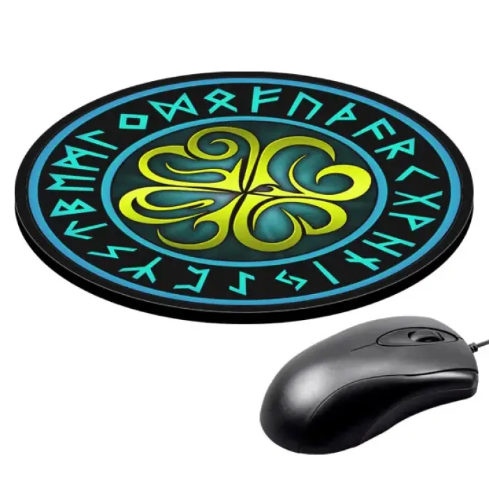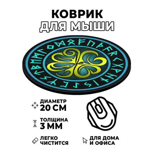 Коврик для мыши с изображением клевера удачи. Диаметр 20 см, толщина 3 мм.