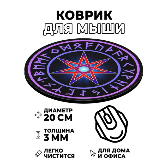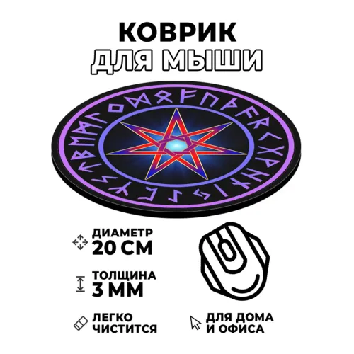 Коврик для мыши «Звезда магов» — это стильный и функциональный аксессуар, который добавит оригинальности в рабочее пространство. С диаметром 20 см и толщиной 3 мм он идеально подходит для комфортного использования компьютера.