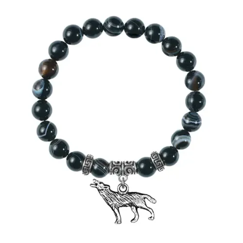Браслет Волк (защита, сила, победа), Черный агат BSP-24-28