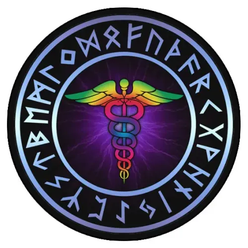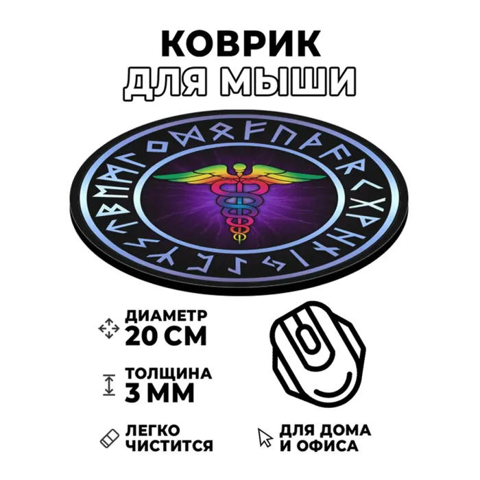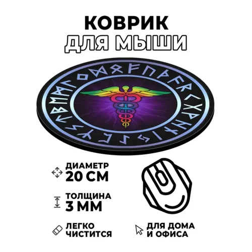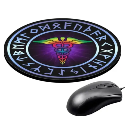Коврик для компьютерной мыши круглой формы с изображением кадуцея.