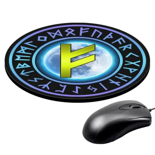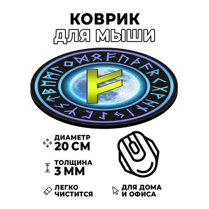 Коврик для мыши с изображением Руны Феху — это не только практичный аксессуар, но и символ удачи и благополучия. Он станет отличным дополнением рабочего места или подарком для ценителей древних знаков.