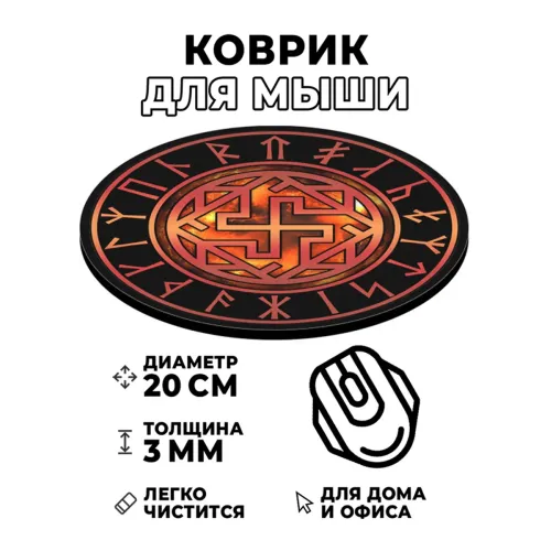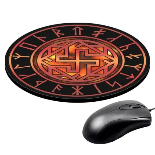 Коврик для компьютерной мыши круглой формы с изображением валькирии. Диаметр 20 см, толщина 3 мм.