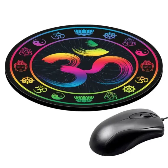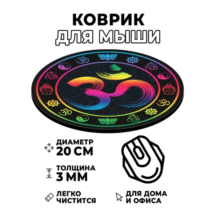 Коврик для компьютерной мыши круглой формы с нанесённым изображением.