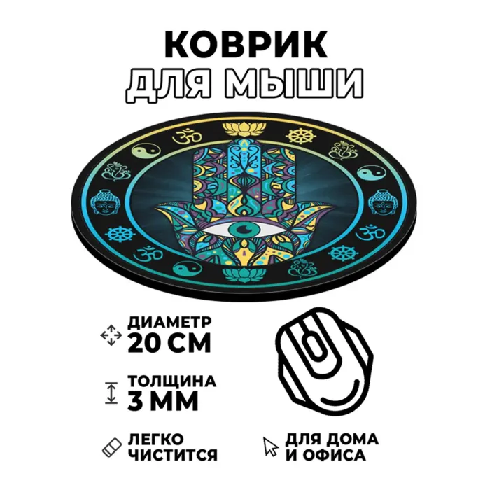Коврик для компьютерной мыши с уникальным изображением Хамсы станет не только практичным аксессуаром, но и стильным элементом рабочего пространства. Символ Хамсы традиционно считается защитником от негативной энергии и приносит удачу.