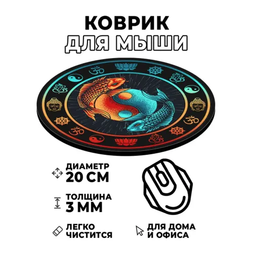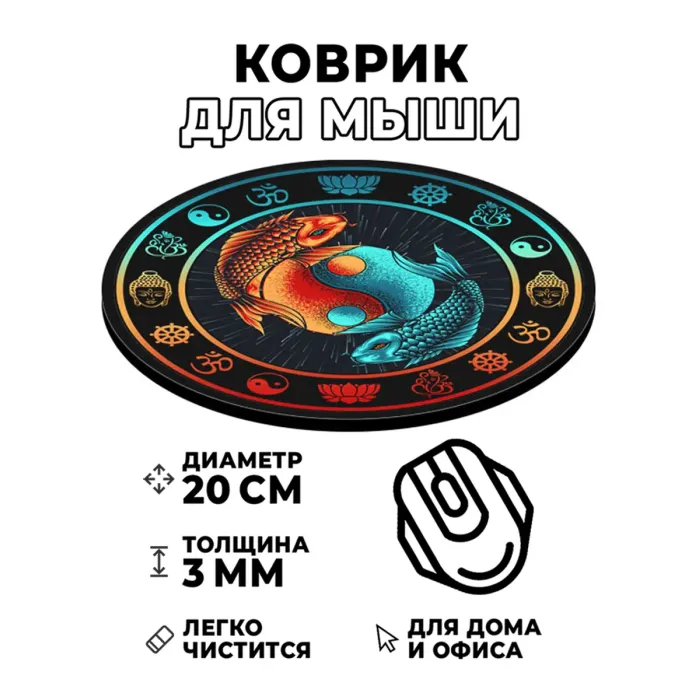 Коврик для мыши с изображением Рыб Инь-Ян — это не только практичный аксессуар, но и символ гармонии и баланса. Он станет отличным дополнением рабочего места, создавая атмосферу спокойствия и умиротворения.