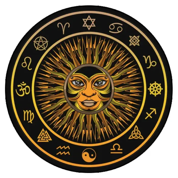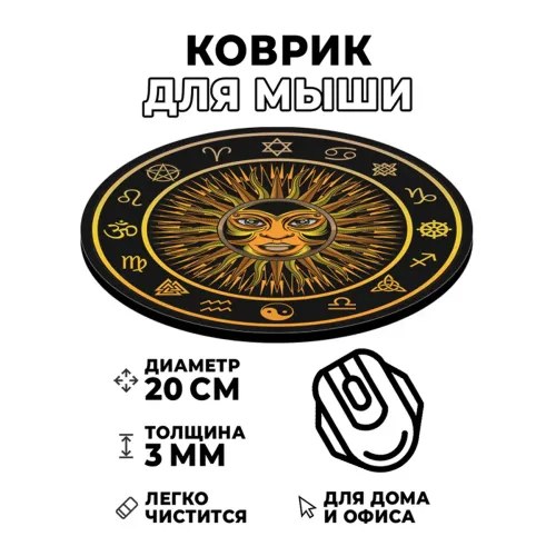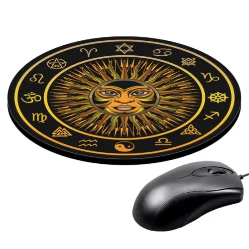 Коврик для мыши круглой формы с изображением солнца.