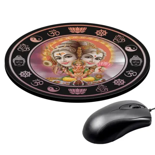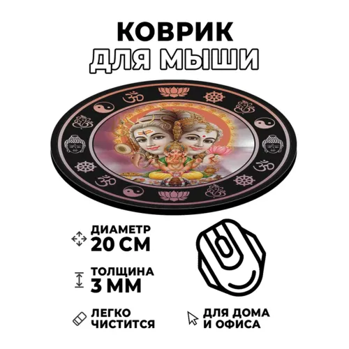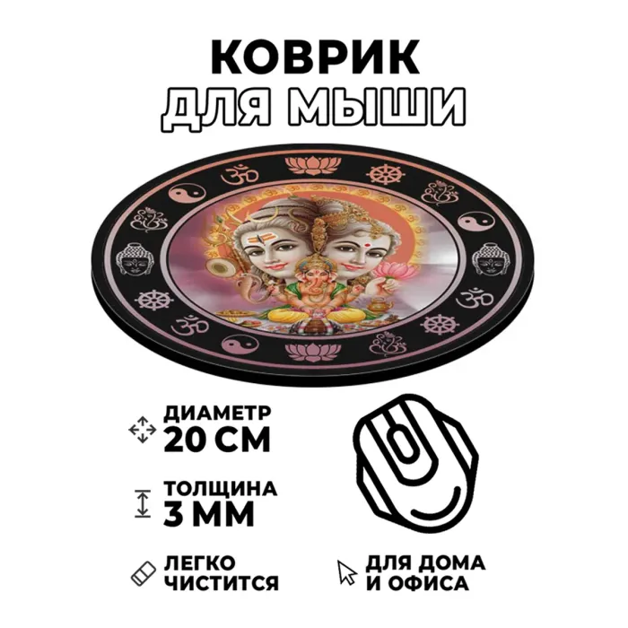 Коврик для компьютерной мыши с изображением божеств Шивы, Парвати и Ганеши — это не только практичный аксессуар, но и символ духовности и гармонии. Он станет отличным дополнением рабочего пространства или подарком для ценителей индийской культуры.