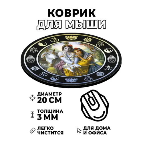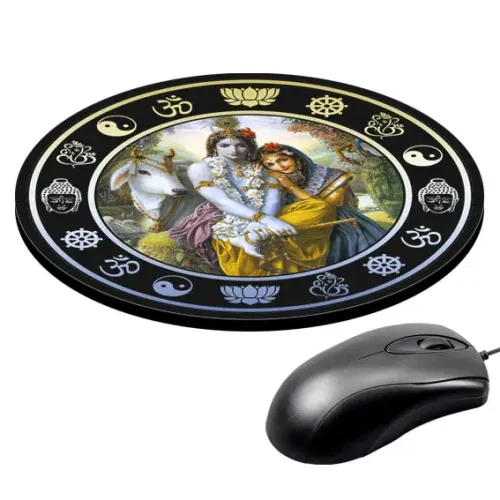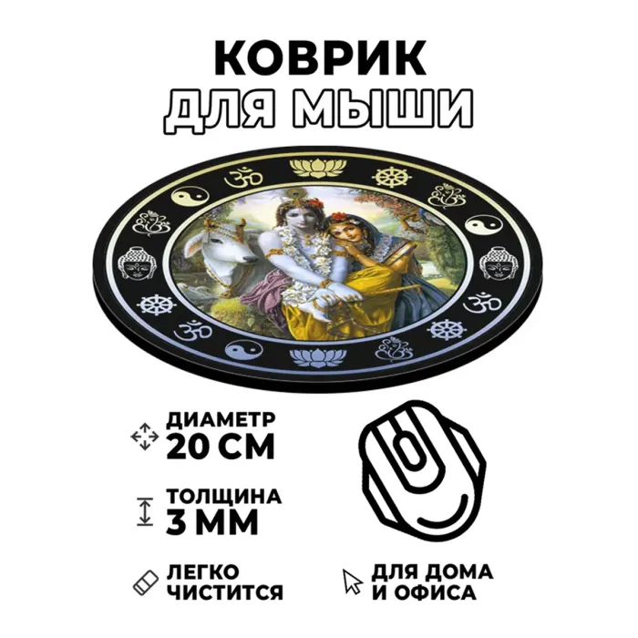 Коврик для компьютерной мыши с изображением Кришны и Радхи — это не только практичный аксессуар, но и элемент культурного наследия. Он символизирует гармонию и любовь, что делает его идеальным подарком для ценителей индийской культуры.