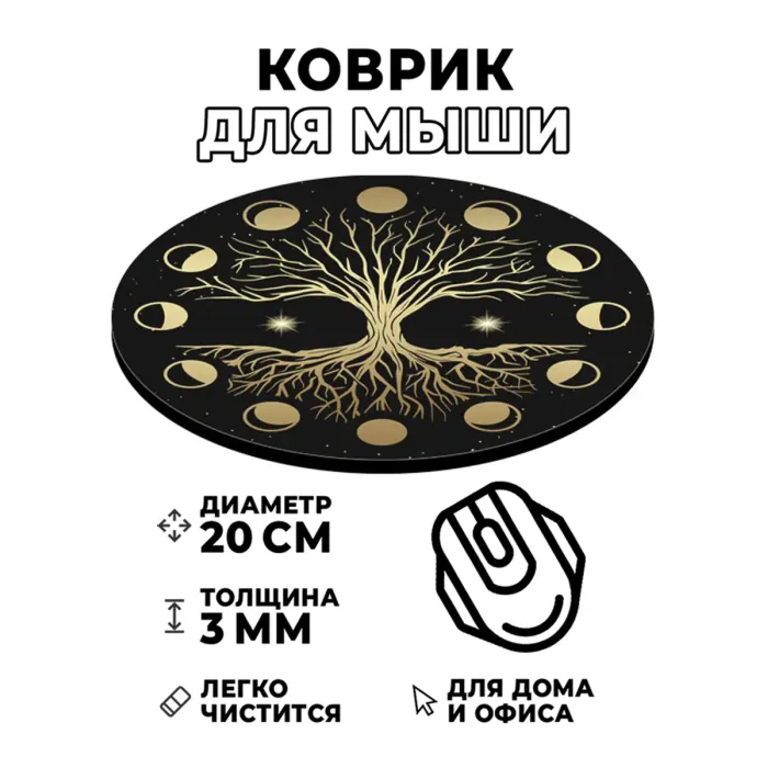 Коврик для компьютерной мыши круглой формы с изображением «Дерево жизни». Диаметр 20 см, толщина 3 мм.