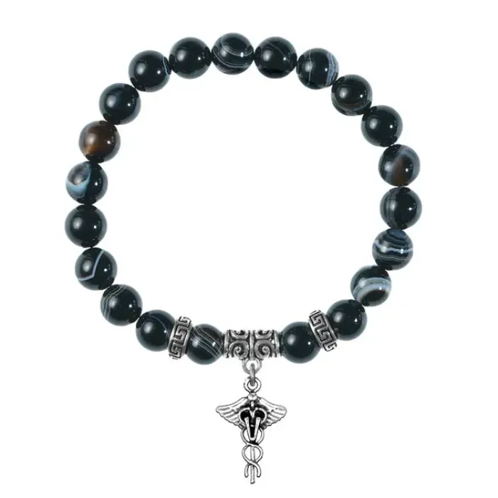 Браслет Кадуцей (здоровье, бизнес, гармония), Черный агат BSP-24-33