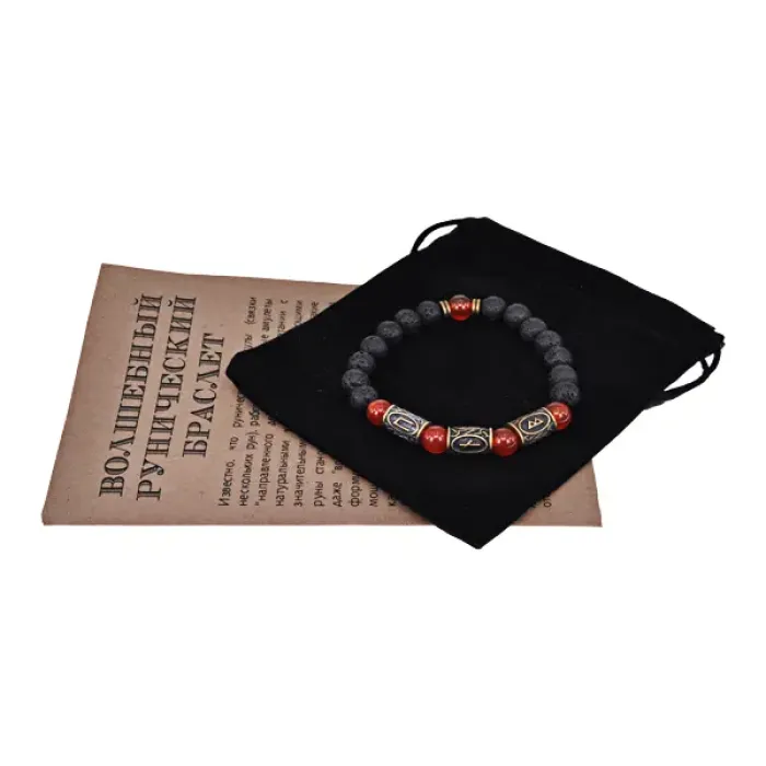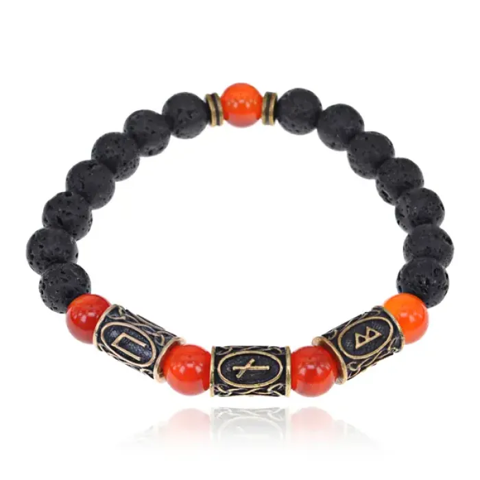 Рунический браслет Руны Пива (защита от магии), лава + сердолик BSRL2-027