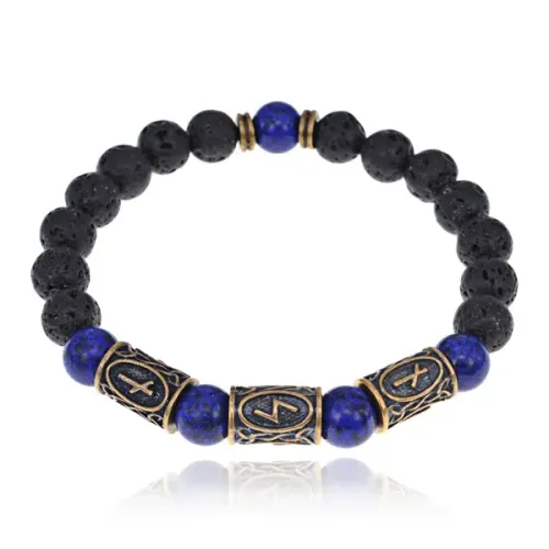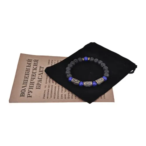 Рунический браслет Нейтрализация негатива, лава + лазурит BSRL2-030