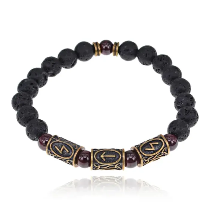 Рунический браслет Победа над злом, лава + гранат BSRL2-031