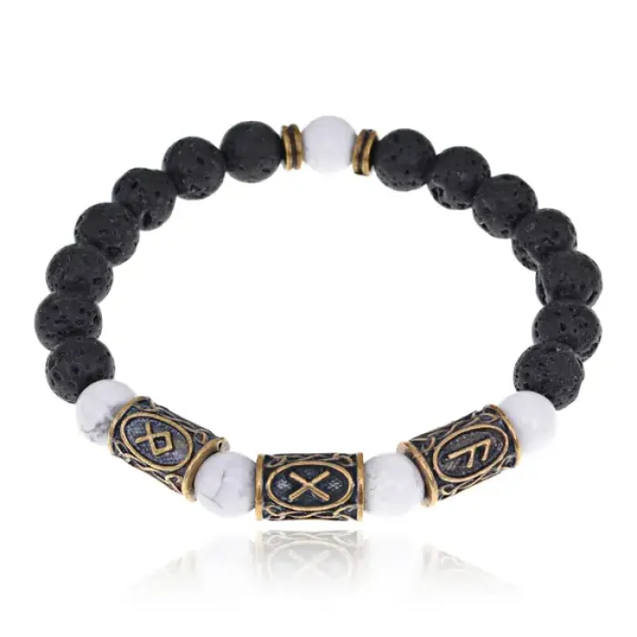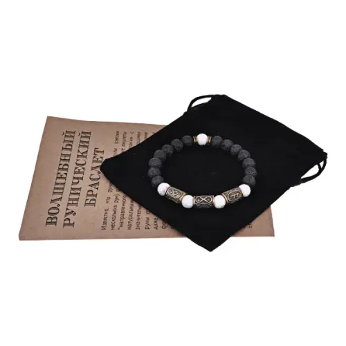 Рунический браслет Укрепление семьи, лава + кахолонг BSRL2-035
