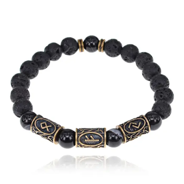 Рунический браслет Преумножение собственности, лава + черный агат BSRL2-040
