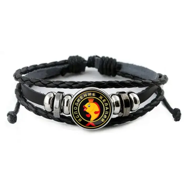 Кожаный браслет Исполнение желаний (золотая рыбка) BSK-0001