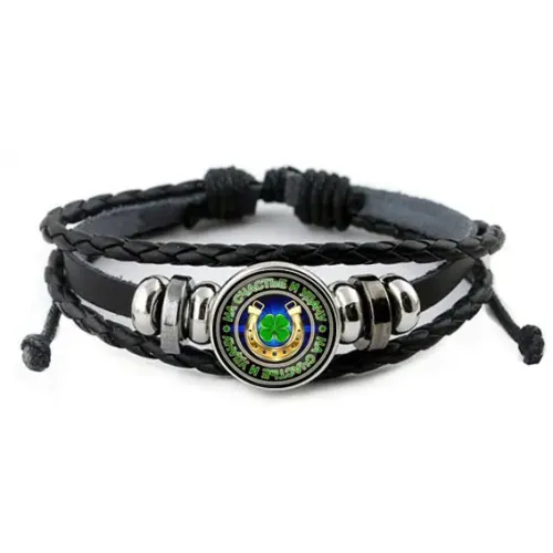 Кожаный браслет «На счастье и удачу» — сувенирный аксессуар из синтетической кожи, металла и стекла с изображением под выпуклой линзой.
