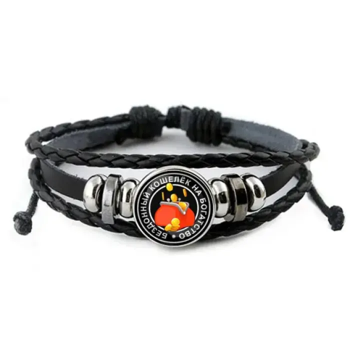 Кожаный браслет с декоративным элементом в виде медальона диаметром 20 мм под выпуклой стеклянной линзой.
