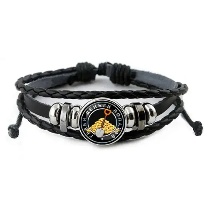 Кожаный браслет Греби деньги лопатой BSK-0043