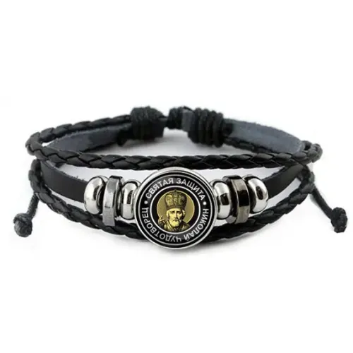 Кожаный браслет Николай Чудотворец BSK-0045