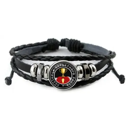 Кожаный браслет с символическим изображением, ассоциирующимся с карьерным ростом.
