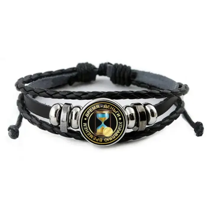 Кожаный браслет с символическим изображением под выпуклой стеклянной линзой.