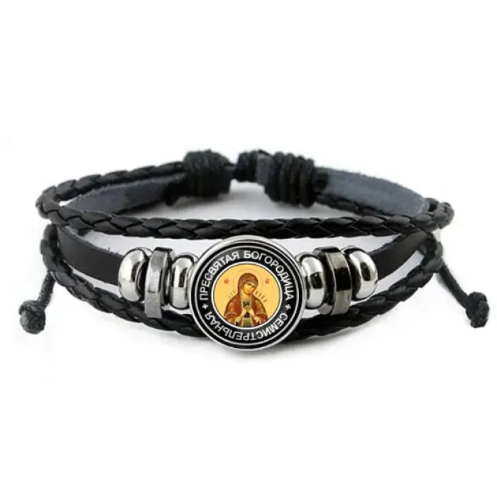 Кожаный браслет Пресвятая Богородица (Семистрельная) BSK-0095