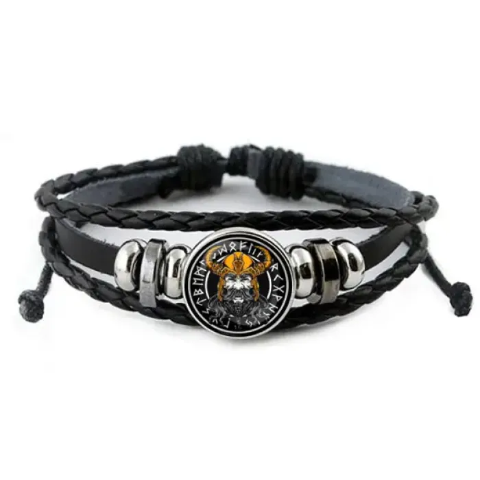 Кожаный браслет с регулируемым размером. Изготовлен из синтетической кожи и металла, центральная часть украшена изображением под выпуклой стеклянной линзой.