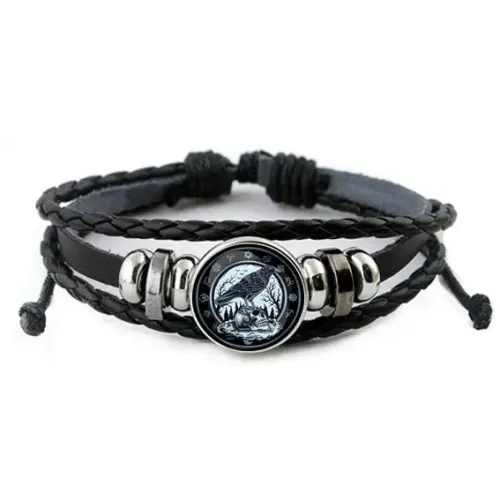 Кожаный браслет Ворон на черепе BSK-0209