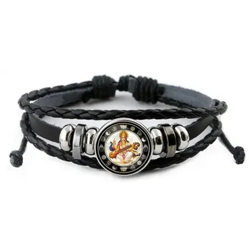 Кожаный браслет с декоративным элементом. Изготовлен из синтетической кожи, металла и стекла. Центральный элемент — изображение под выпуклой стеклянной линзой диаметром 20 мм.