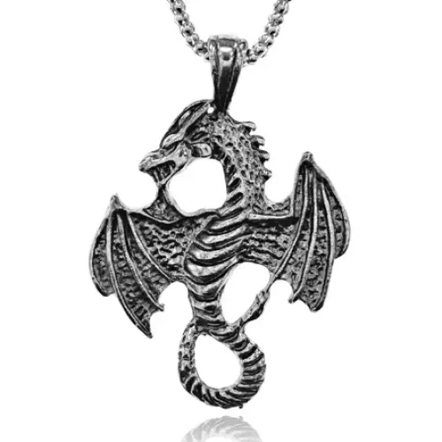 Амулет в виде дракона из бижутерного сплава с серебристым покрытием.