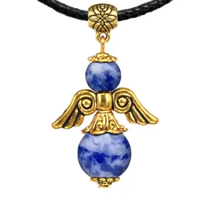 Талисман Ангел-хранитель с натуральным камнем Содалит, цвет золотой AH013-G