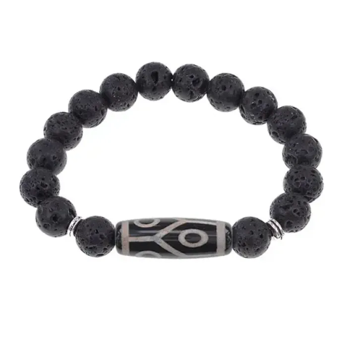 Браслет с 6-глазой бусиной Дзи и нат.камнем Лава BSDS-16-09