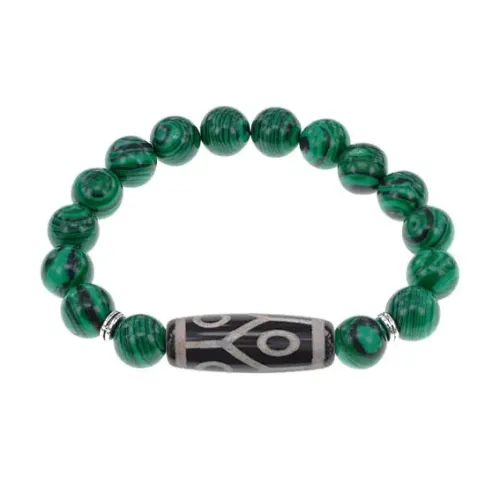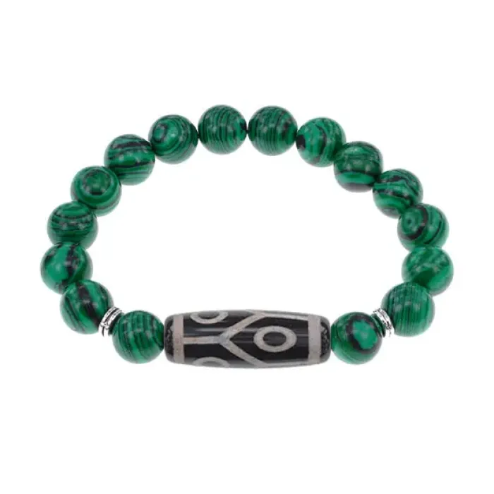 Браслет с 6-глазой бусиной Дзи и синт.камнем Малахит BSDS-16-12