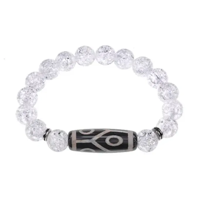Стрейч-браслет из синтетического камня, имитирующего сахарный кварц, с тибетской бусиной Дзи из натурального агата.