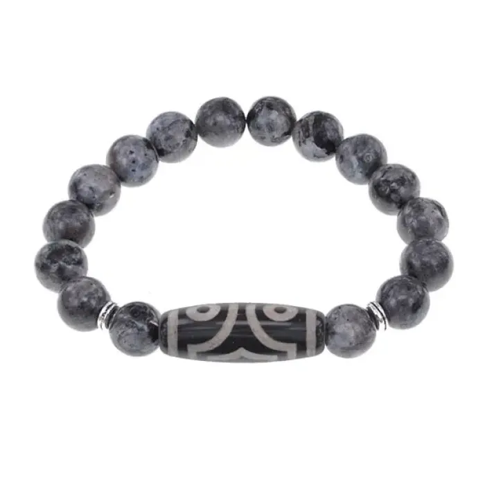 Стрейч-браслет из натурального камня лабрадор с тибетской бусиной Дзи из агата.
