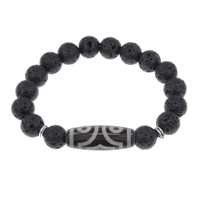 Браслет с 3-глазой бусиной Дзи и нат.камнем Лава BSDS-17-09