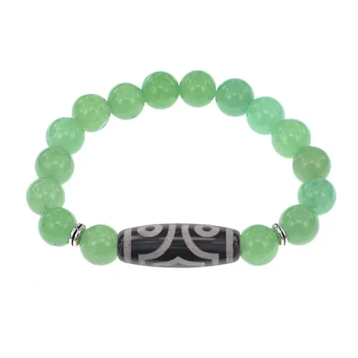 Стрейч-браслет из натурального нефрита с тибетской бусиной Дзи из агата.