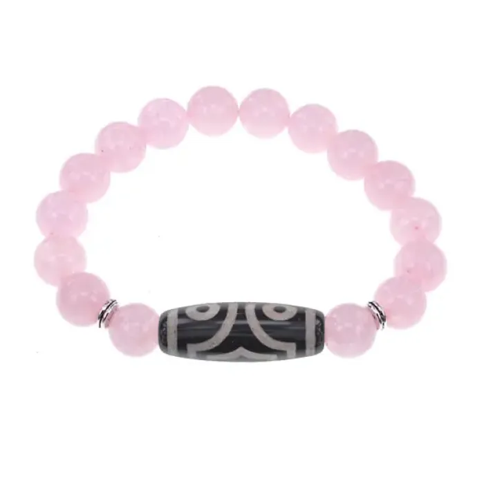 Браслет с 3-глазой бусиной Дзи и нат.камнем Розовый кварц BSDS-17-15