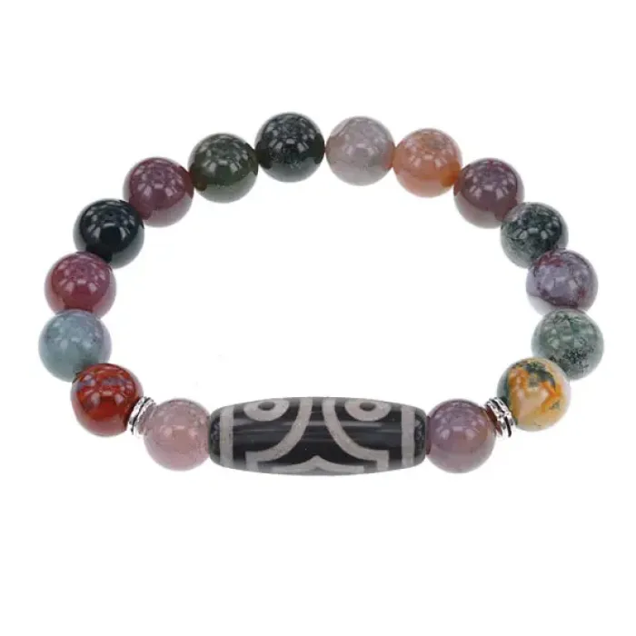 Стрейч-браслет из натурального камня яшмы с тибетской бусиной Дзи из агата.