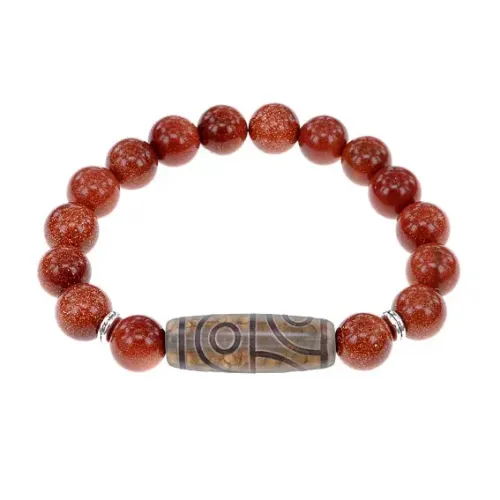 Стрейч-браслет из синтетического камня с тибетской бусиной Дзи из агата.