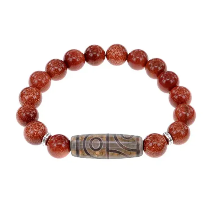 Браслет с 4-глазой бусиной Дзи и синт.камнем Коричневый авантюрин BSDS-21-01