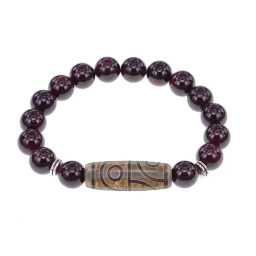 Браслет с 4-глазой бусиной Дзи и нат. камнем Гранат BSDS-21-06