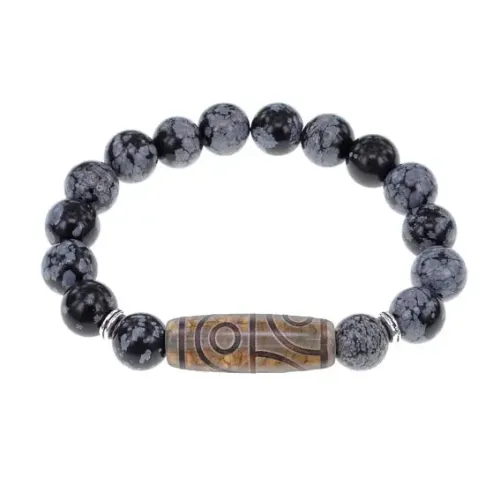 Браслет с 4-глазой бусиной Дзи и нат.камнем Снежный обсидиан BSDS-21-14