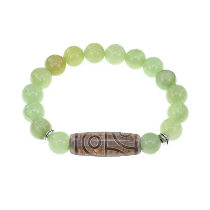 Стрейч-браслет из синтетического камня, украшенный тибетской бусиной Дзи из натурального агата.