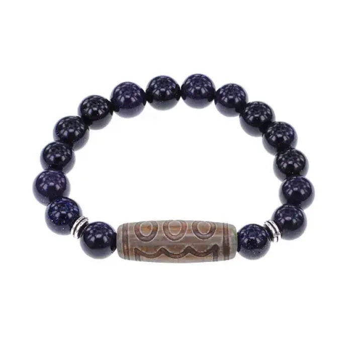 Браслет с 5-глазой бусиной Дзи и синт. камнем Синий авантюрин BSDS-22-02
