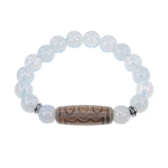 Стрейч-браслет из синтетического камня, украшенный тибетской бусиной Дзи из натурального агата.