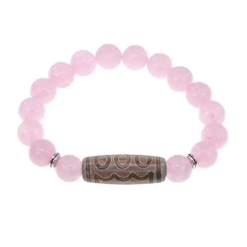 Браслет с 5-глазой бусиной Дзи и нат.камнем Розовый кварц BSDS-22-15